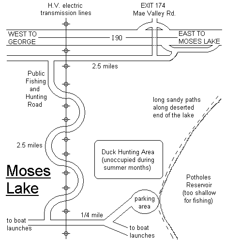 This near Moses Lake beach has had fairly active nude use over the years. This is another area where if you want you can find a very secluded spot for just yourself or you may meet some of the travel groups here for an outing! The area is frequented much by people from the SE corner of Washington so if you live in that area, you could very easily meet your nextdoor neighbor here! This map is one which we first used to find a place for ourselves out here! The area up at the "deserted end of the lake"! Map